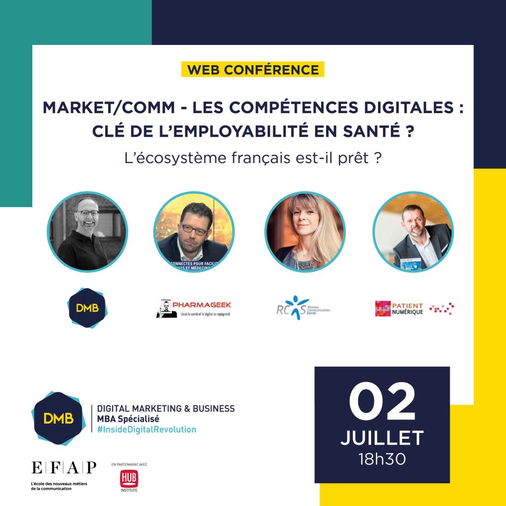 Le MBA spécialisé Digital Marketing & Business #Health de l’EFAP est heureux de vous inviter au webinar :Marketing/ Comm – Les compétences digitales : Clé de l’employabilité en Santé